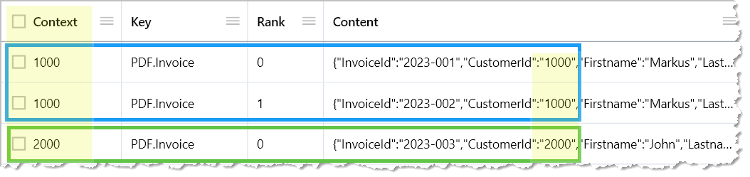 You can save documents with the same `Key` under different `Context`. Which means, that `Key`, `Rank` and `Context` become a unique key.&#x20;